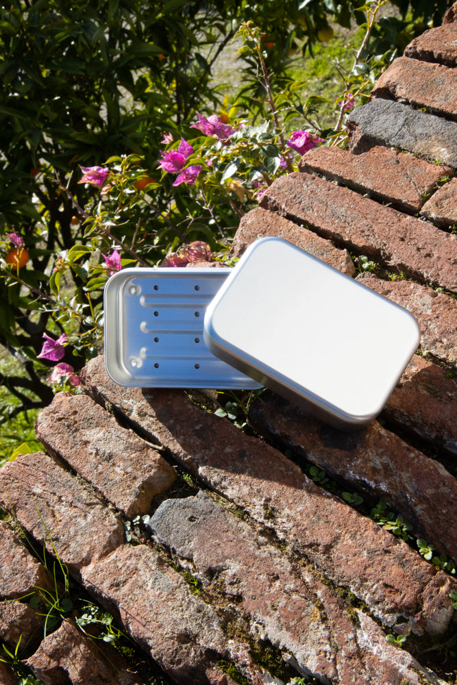 Questa scatoletta in latta è davvero funzionale per il trasporto di saponette e di tutti i detergenti solidi: è infatti provvista di una grata interna, con fori, utile a far colare l'acqua in eccesso e lasciare che i prodotti contenuti si asciughino al meglio.