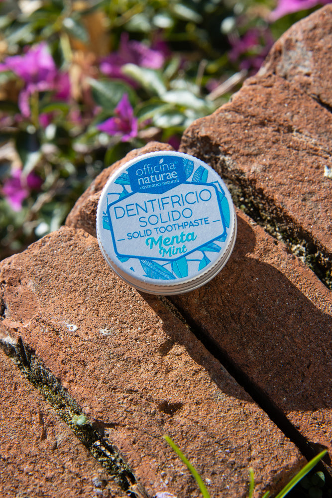 Officina Naturae non si stanca mai di proporti nuovi prodotti da provare e far provare e, con questa mini taglia, potrai imparare in tempo breve come si usa un dentifricio solido: metti in bocca una pastiglia di dentifricio, mordicchia e spazzola!