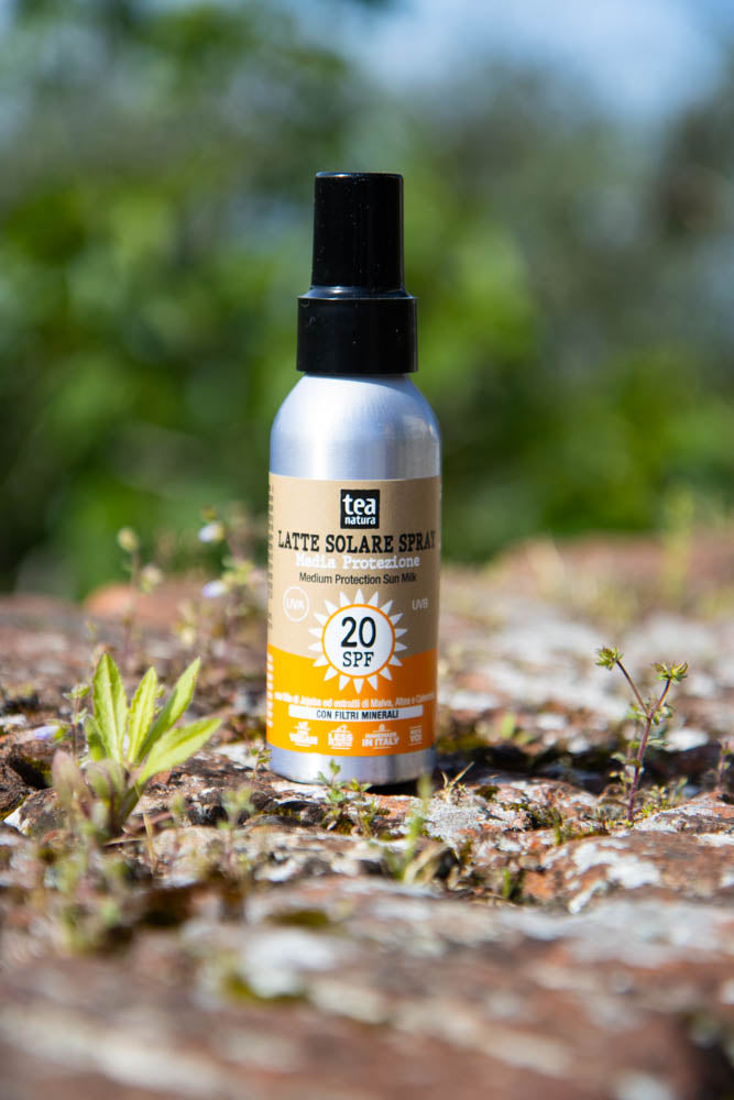 Il Latte Solare Spray SPF20 Teanatura è arricchito con un fattore alto di protezione ed è indicato per pelli chiare o castane alle prime esposizioni ai raggi solari. Formulato con Filtri di origine Minerale, che aiutano a proteggere dai raggi UVA e UVB, ed arricchito con estratto oleoso di Malva, Altea e Calendula ed olio di Jojoba Bio, che aiutano a contrastare l’invecchiamento cutaneo. Il prodotto si spalma facilmente, assorbe bene e non crea patina bianca.